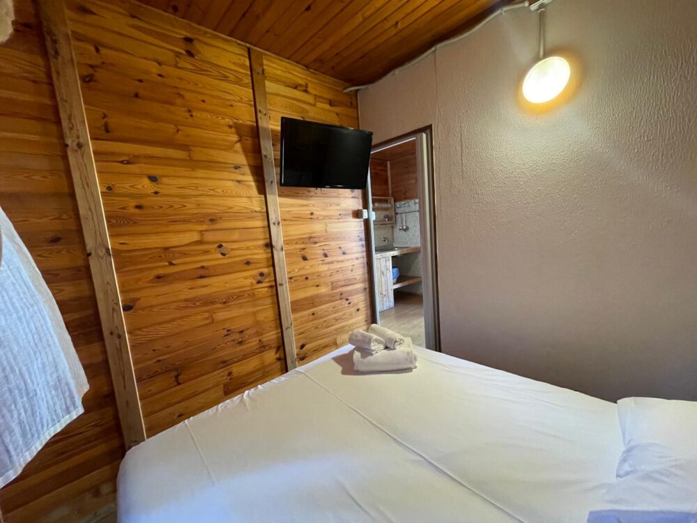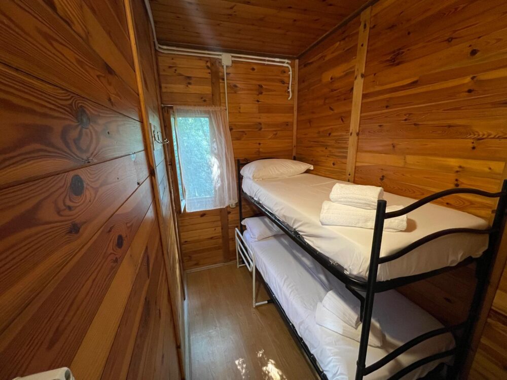 Zwei-Zimmer-Wohnung: 1 Schlafzimmer mit Doppelbett, 1 Schlafzimmer mit Etagenbett, ausgestattete Küchenzeile mit Geschirr. Dieser Typ verfügt nicht über ein eigenes Badezimmer. Die zentralen Sanitäranlagen (mit kostenlosen Warmduschen) sind jedoch sehr nahe bei den Unterkünften.